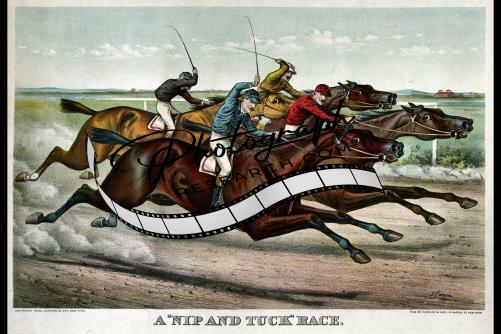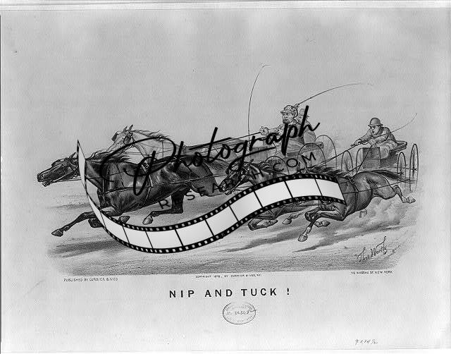 Nip,tuck!,Harness Racing,horses,jockeys,c1878,Currier & Ives
