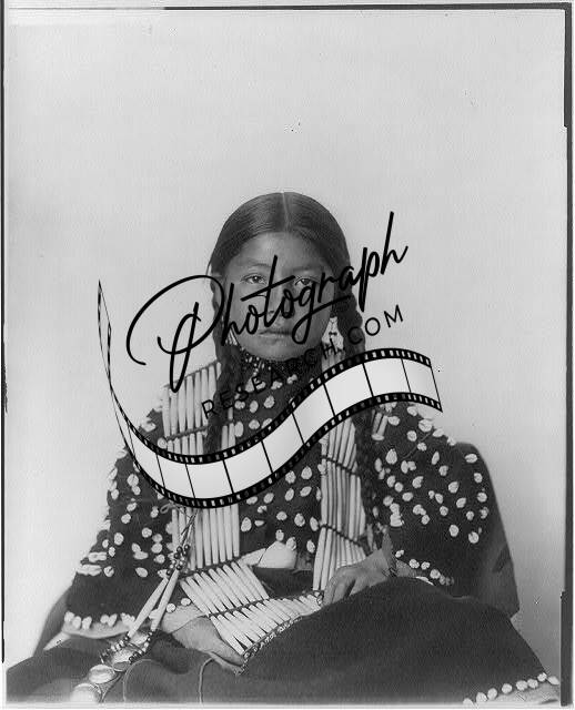 Shiptela,Indian girl in ornate shell dress,c1900,braided hair