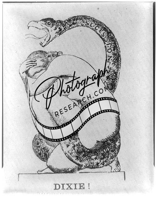 Anti-Confederacy cartoon showing 'Dixie' entwined by snake of secession,1860