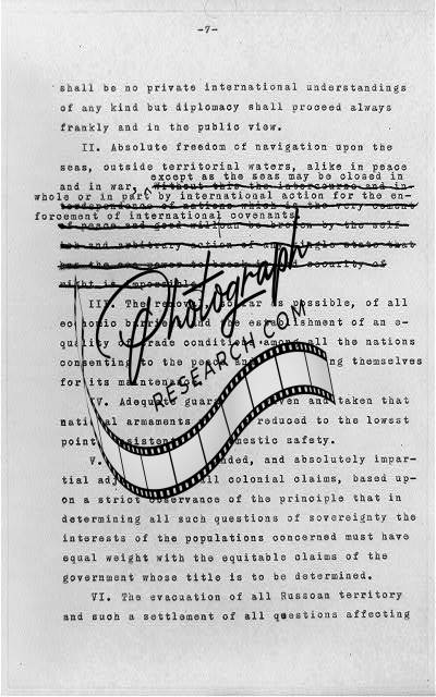 [[Four pages of Wilson's draft for his "Fourteen Points" address, delivered befor