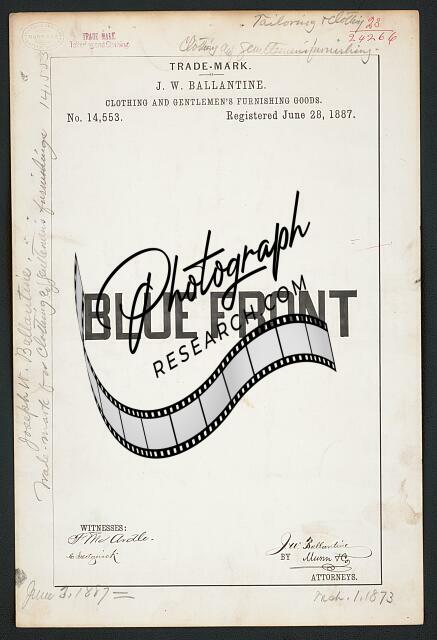 J. W. Ballantine for Blue Front brand Clothing,Gentlemen's Furnishing Goods