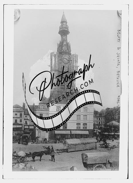 Belfry & Square,Bethune,France,wagons,people,buildings,Bain News Service
