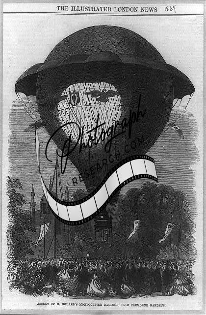 Ascent of M. Godard's Montgolfier balloon from Cremorne Gardens