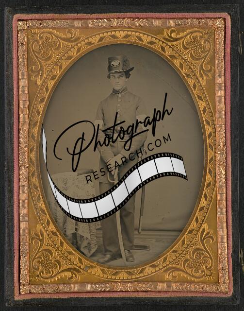Photograph shows two identified soldiers: Slingerland, right, was captured on September 15, 1862, and paroled on September 16, 1862 at Harper's Ferry, Virginia; DeGraff, left, was wounded on May 7, 1864, at Chester Station, Virginia.
