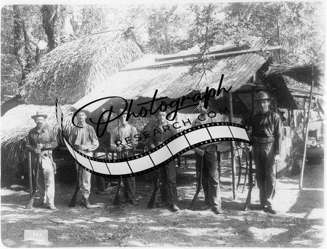6 American soldiers posed with rifles in camp in the Philippines,c1899,military