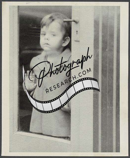 [[Boy, three-quarter length portrait, standing with face pressed to glass door]]