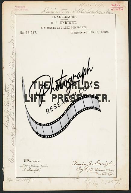 D. J. Enright for The World's Life Preserver. brand Liniments,Like Compounds