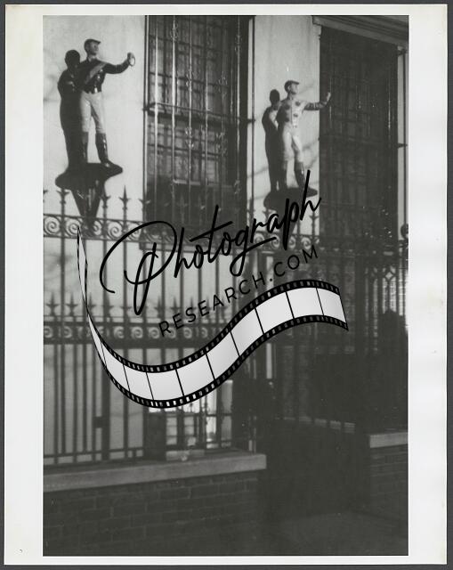 [[Jockeys statues outside New York City building, possibly the 21 Club]]