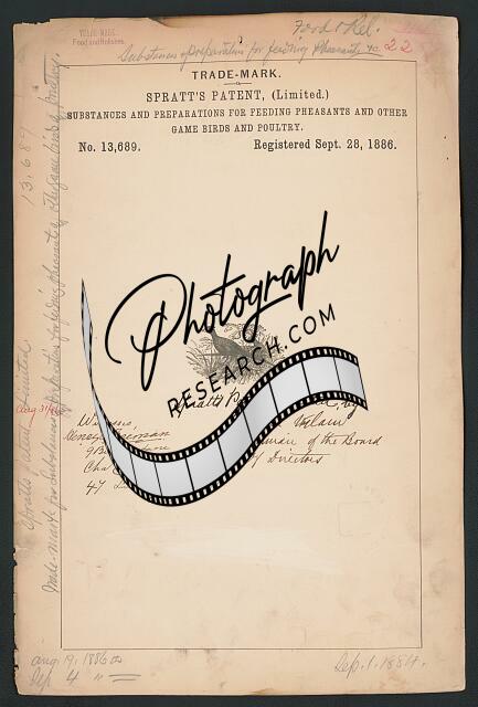 Title: [Trademark registration by Spratt's Patent, (Limited) for [Pheasant Logo] brand Medicine for Pheasants and Other Game Birds and Poultry]
