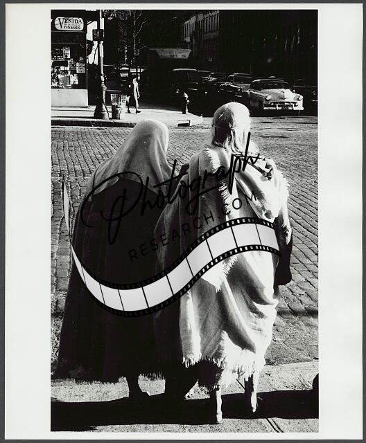 [[Back view of two women, full-length portrait, standing on 2nd Avenue sidewalk,
