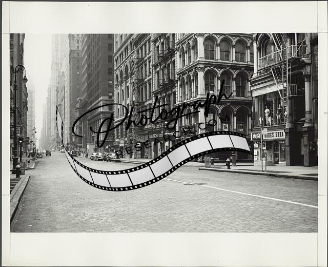 [[Street scene of Broad Street looking north towards Wall Street, Financial Distr