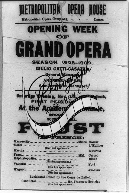[[Playbill for opening week of the Metropolitan Opera House season, 1908-1909 at