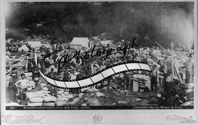Klondike outfits on the rocks near Dyea, Alaska