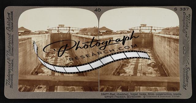 East chamber, lower locks, from construction trestle toward Panama, Miraflores
