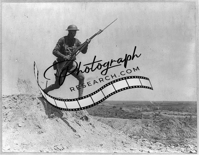 'The Yank',U.S. Soldier going 'over the top',World War I,c1918,rifle,man,field