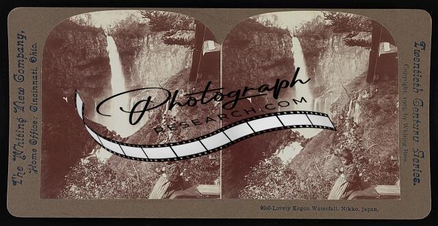 Peasant praying before long row of images of the god of light-so. bank Daiya river (e.), Nikko, Japan