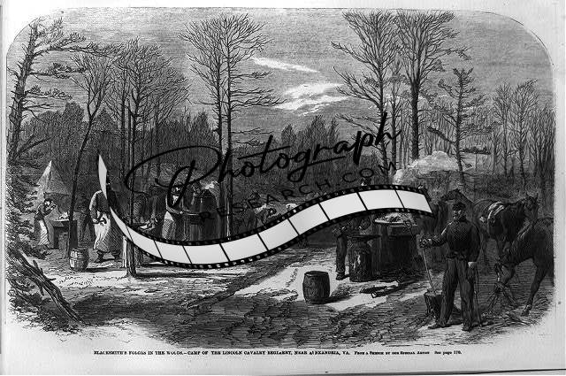 [[Blacksmith's forges [[?]] in the woods. - Camp of the Lincoln cavalry regiment, n