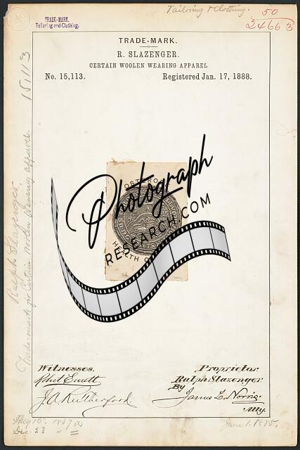 R. Slazenger for Osterode Health Clothing brand Certain Woolen Wearing Apparel