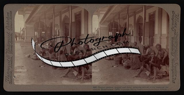Native venders, ragged and dirty, awaiting arrival of the train--at the station,