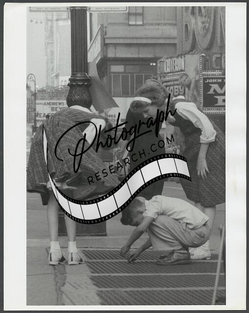 [[Cigarette girl in costume selling outside on New York City sidewalk]]