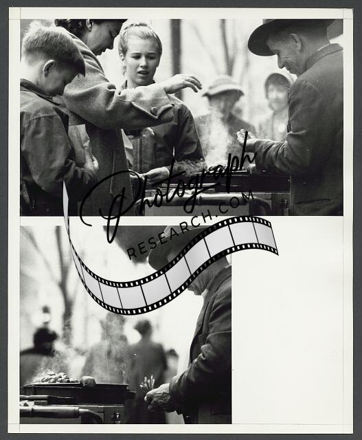 [[Street vendor preparing and selling food to passersby, two frames]]