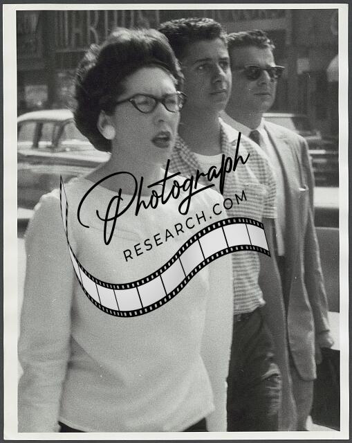 [[Three-quarter length view of three people on a city street]]