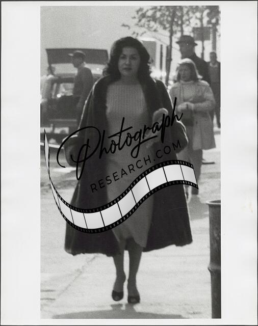 [[Woman in fur coat walking on sidewalk towards camera]]