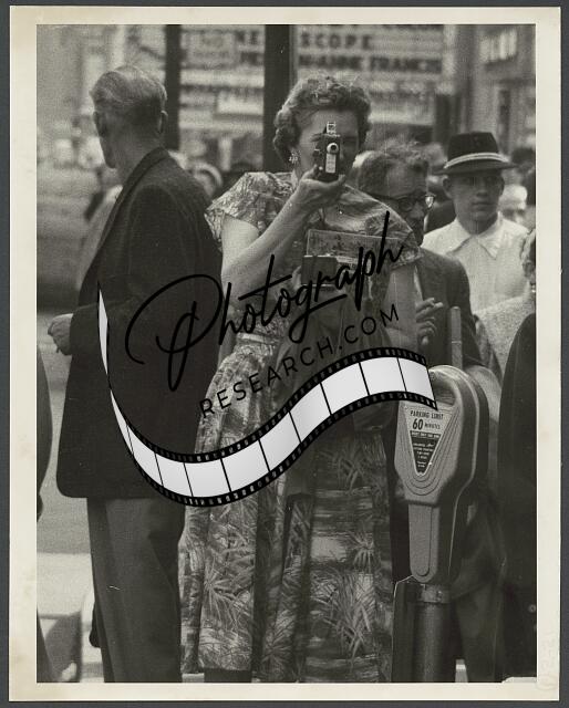 [[Unidentified woman holding camera while walking on New York City sidewalk]]