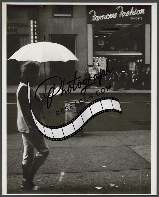 [[Unidentified person holding umbrella walking on New York City sidewalk]]