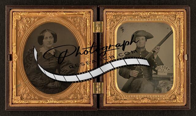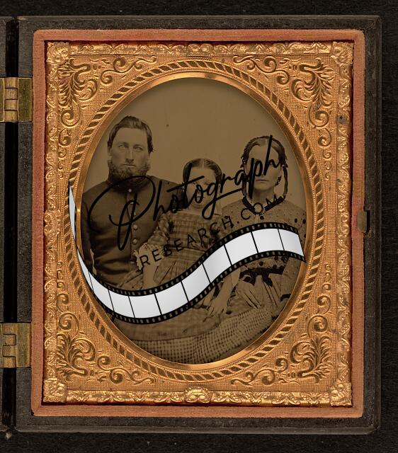 [[Unidentified soldier in Union uniform with his wife and daughter]]