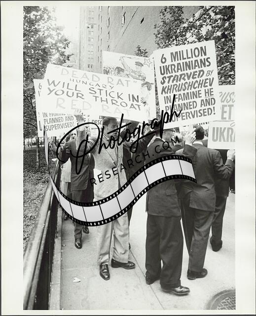 [[Group of protestors holding signs against Khrushchev]]