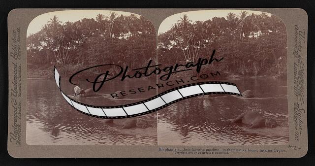 Elephants at their favorite pastime--in their native home, interior Ceylon
