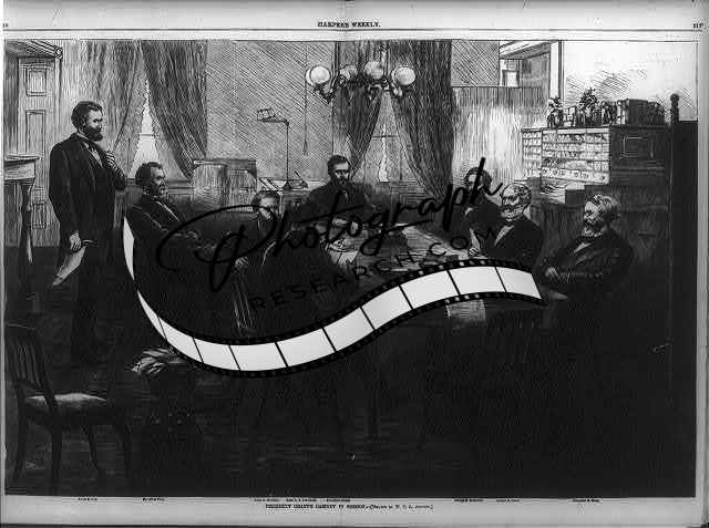 The first cabinet meeting under the administration of Andrew Johnson at the Trea