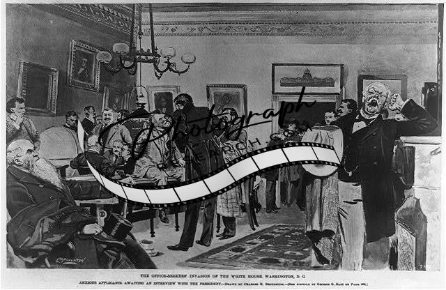 [[The office-seekers invasion of the White House, Washington, D.C. Anxious applic