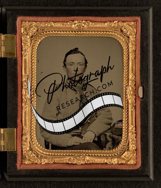 [[Unidentified soldier in Confederate uniform with bayoneted musket and D-guard B