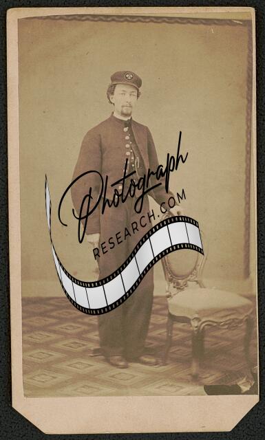 [[Unidentified soldier in Union uniform holding Co. B, 18th Regiment hat]]