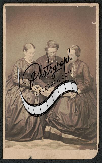 [[Unidentified soldier in Union uniform and two unidentified women reading a Bibl
