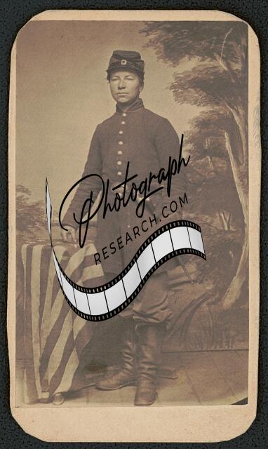 [[Soldier named Lee Wilson in Union uniform with sword and American flag in front