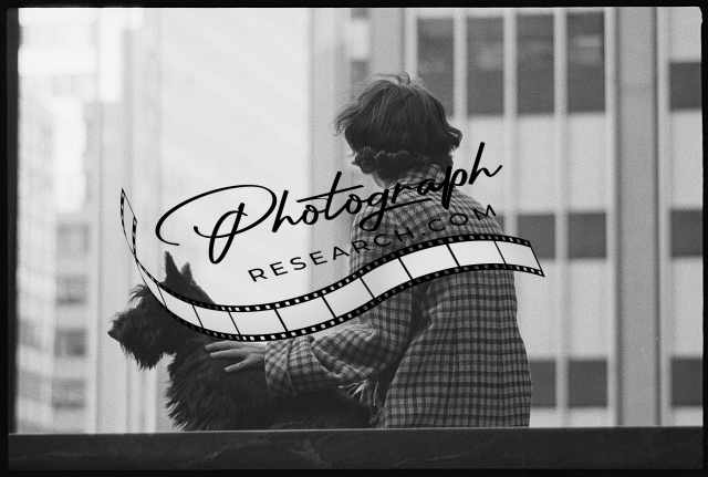 [[Woman sitting with Scottish Terrier]]