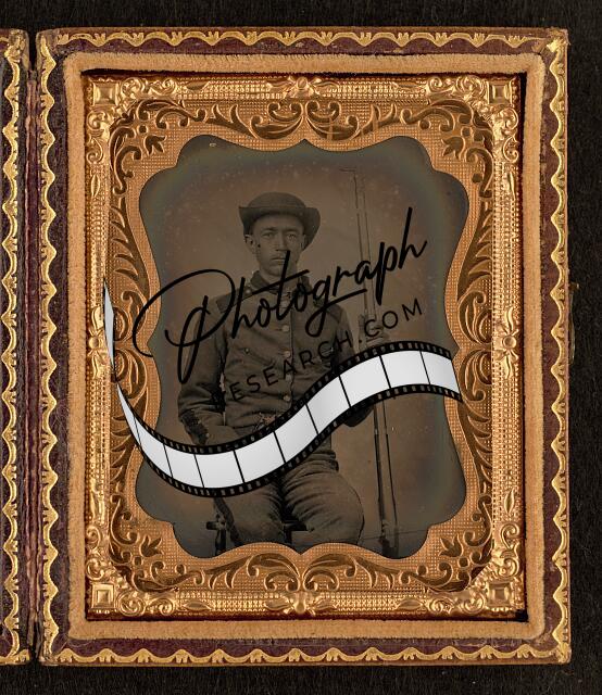 [[Unidentified soldier in Confederate uniform with musket and Colt Model 1855 Sid