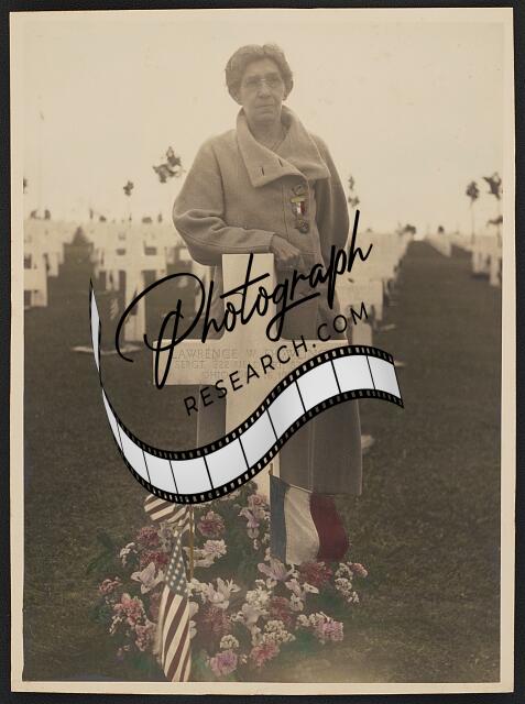 [[Sarah Belle Karn Dowling Neer visiting the grave of her son, Sergeant Lawrence