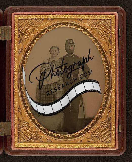 [[Unidentified soldier in Union uniform with sword, with lock of hair in case]]