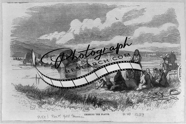 Crossing the Platte,Wagon train crossing a river,1859,'Pike's Peak Gold Miners'