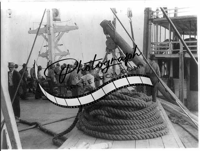 [[A group of negro roustabouts on the main (lower or freight) deck of the anchor