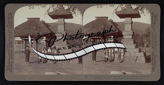 Little folks on their playground before the quaint village schoolhouse, Karuizaw