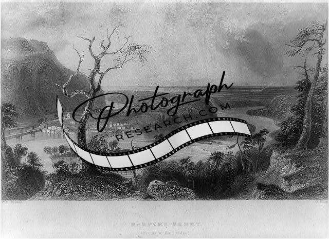 [[Harper's Ferry--general view with bridge, railroad tracks, mountains, etc.]]