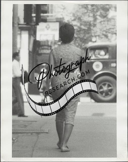 [[Unidentified woman carrying a hand bag, full-length portrait, from behind, walk