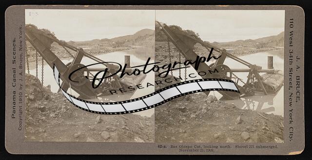 Bas Obispo cut, looking north. Shovel 221 submerged. November 21, 1909