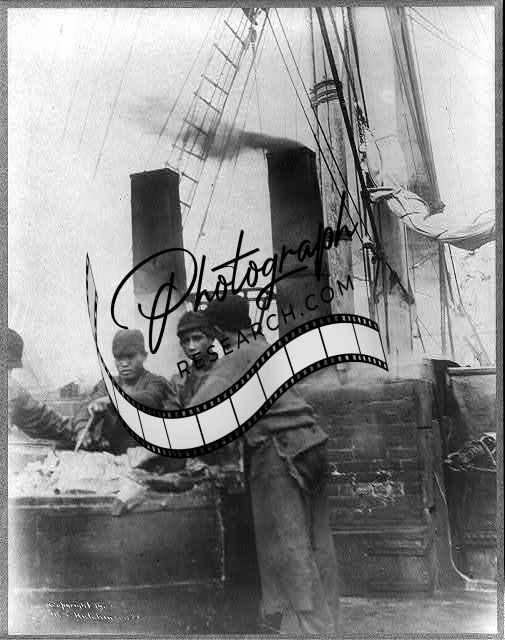 [[Sailors aboard the whaler "California" mincing blubber of whale caught off coas