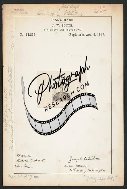 J. W. Potts for Potts' Sure Cure brand Liniments,Ointments